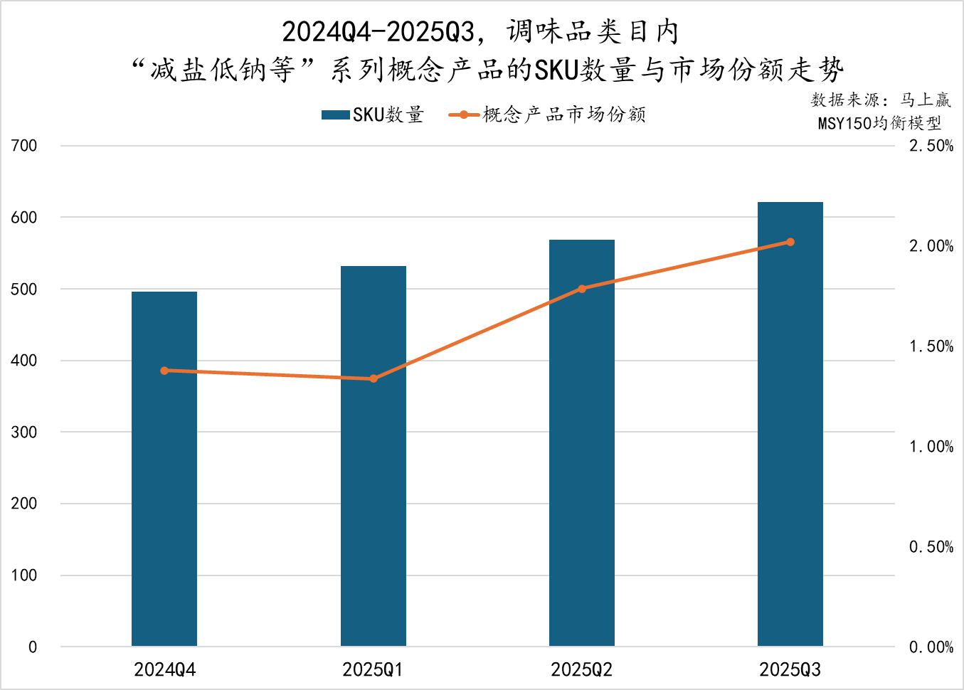 2024Q4至2025Q3,“减盐、低钠等”系列概念产品的SKU数量持续增长,从约500款上升至600款以上,增长趋势稳健;与此同时,市场份额也由1.4%提升至约2%,市场份额增速也有所提升,或可说明这一概念的市场认可度依然稳步提升中。