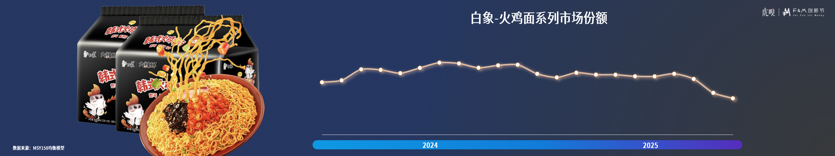但没想到,2025年的情况就没那么乐观,曾经抓住舆情事件实现快速增长的白象也受到了舆情的反噬,并在文字游戏等争议的声音中增长放缓甚至失速,份额也有一定程度的下滑。
