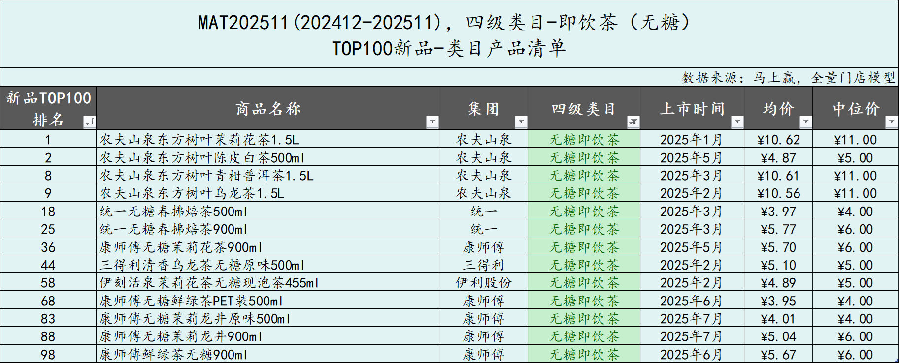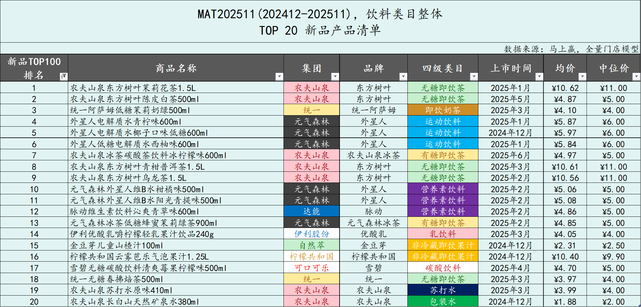 2025年已经接近尾声,未来两周马上赢情报站也将开启“年终盘点模式”。与往年类似,今年的年终盘点系列依然从饮料新品开始,通过回顾2024年12月-2025年11月饮料市场的TOP100单品,以及与上一年同一时间段的对比,来观察在过去一年,饮料市场有什么新的趋势与走向。在下一周,我们将对饮料各类目中的TOP集团及其份额变动进行盘点,敬请关注!