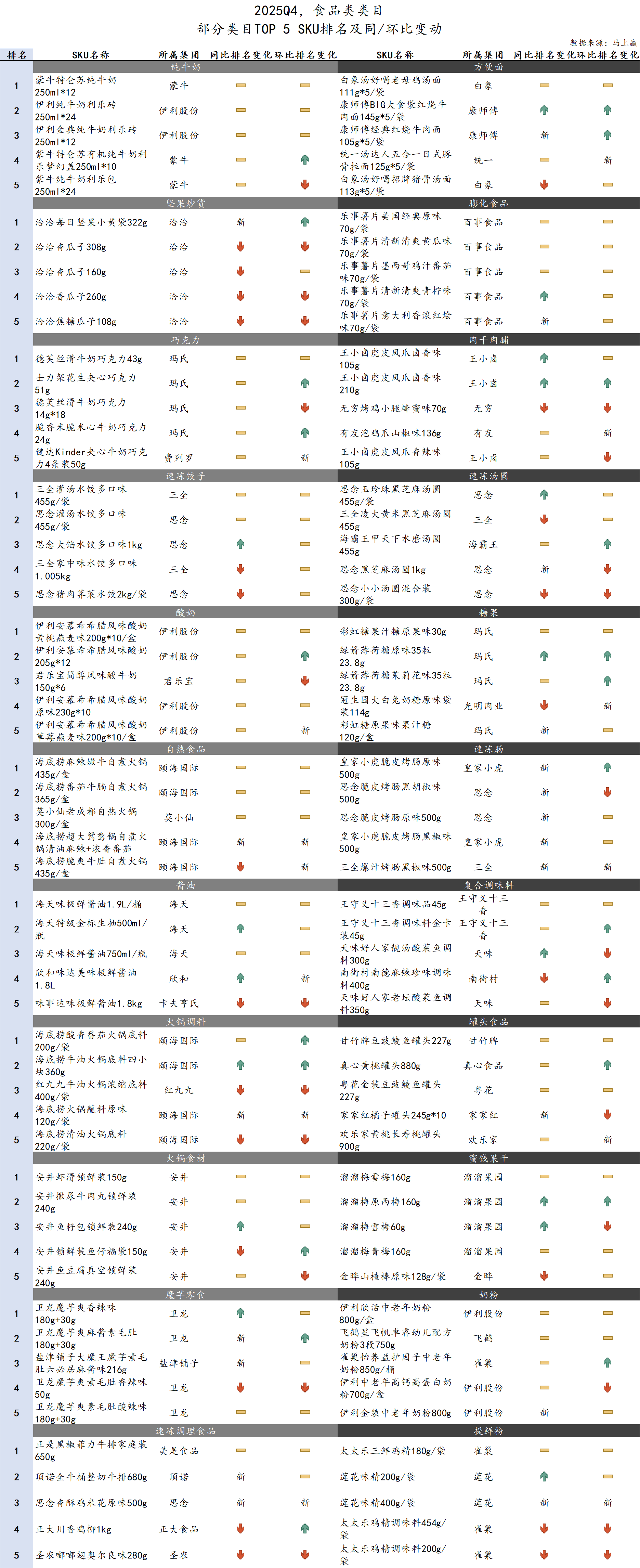 在本季度食品类类目的Top SKU变动上,几个点的变化值得关注: