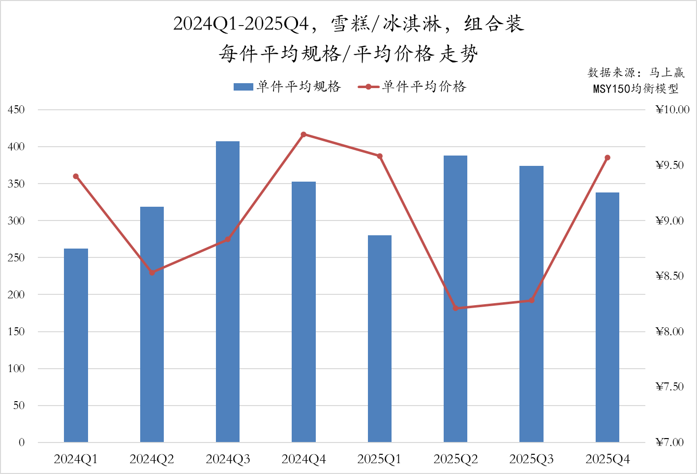 组合装产品方面,件均规格和件均价整体呈现出较为显著的波动。件均规格在2024Q3达到峰值后经历连续两个季度的缩减,2025Q1跌至280g左右,此后在2025Q2大幅回升。件均价走势则与件均规格相反,在2024Q4和2025Q4的非旺季均攀升至9.6元以上,而在2024Q2和2025Q2的夏季旺季则均下探至8.5元。