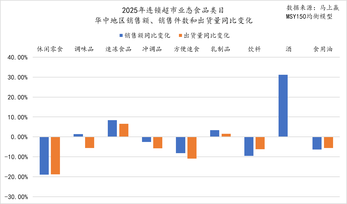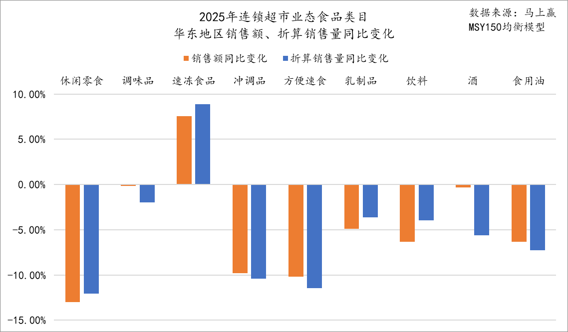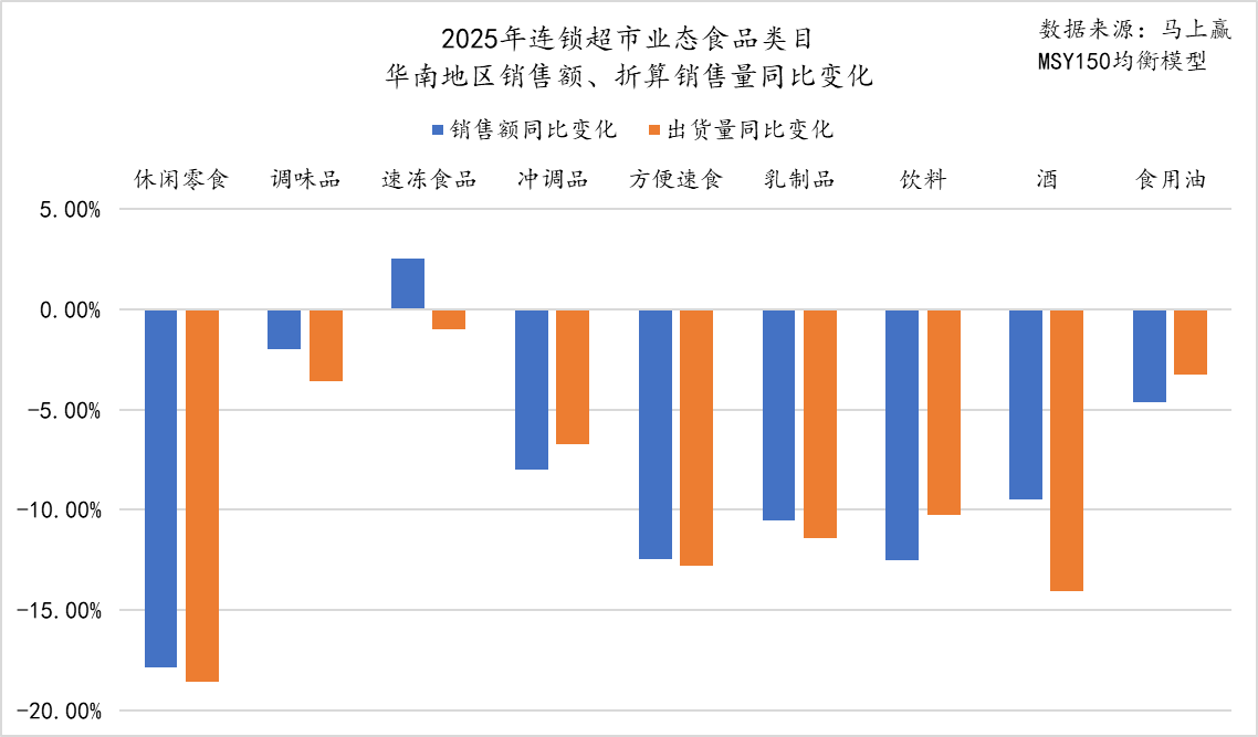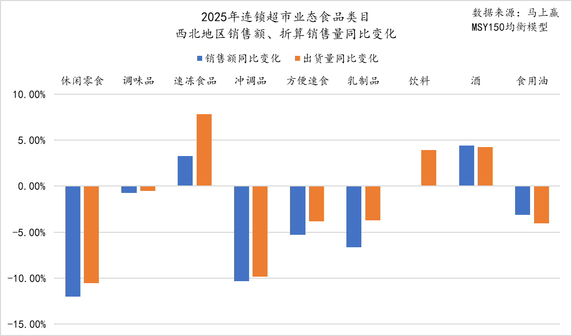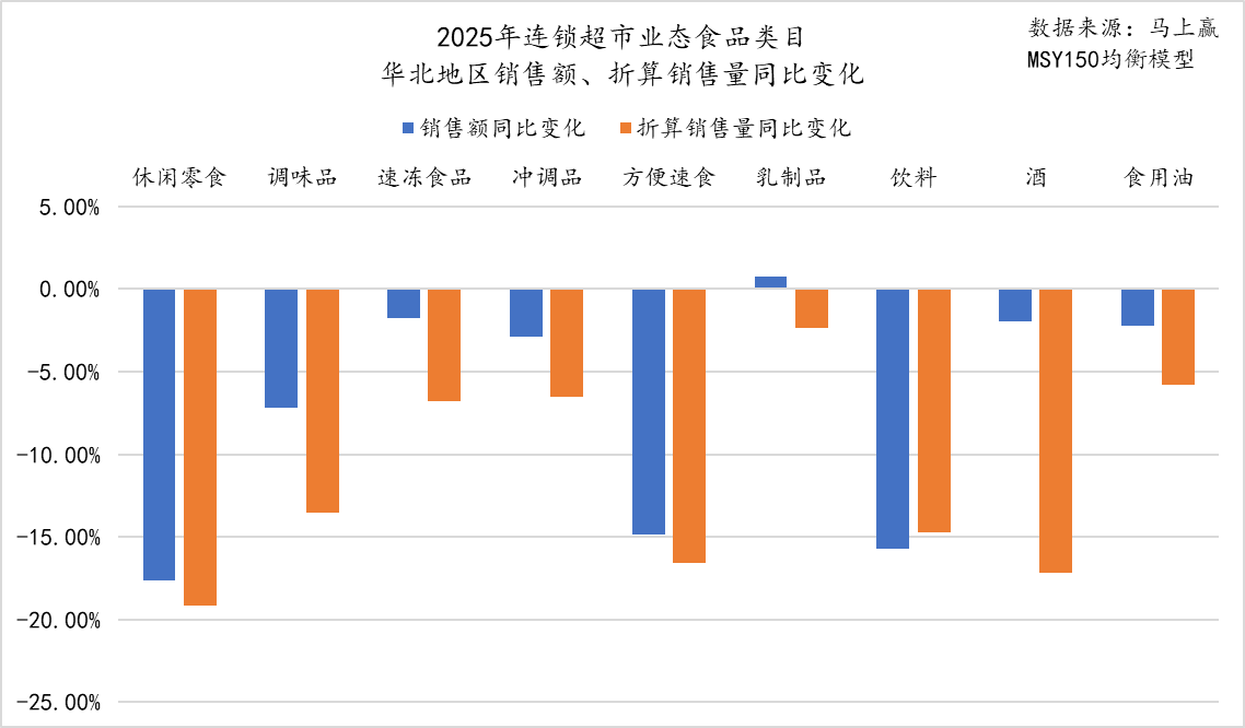 接下来分地区观察2025年连锁超市业态相关食品类目的数据变化及趋势。