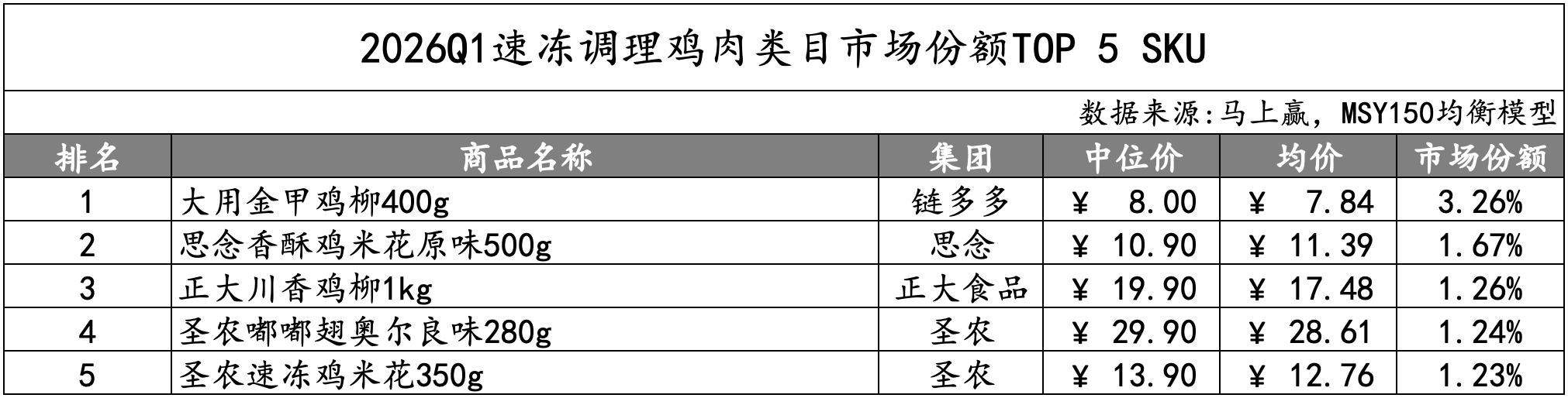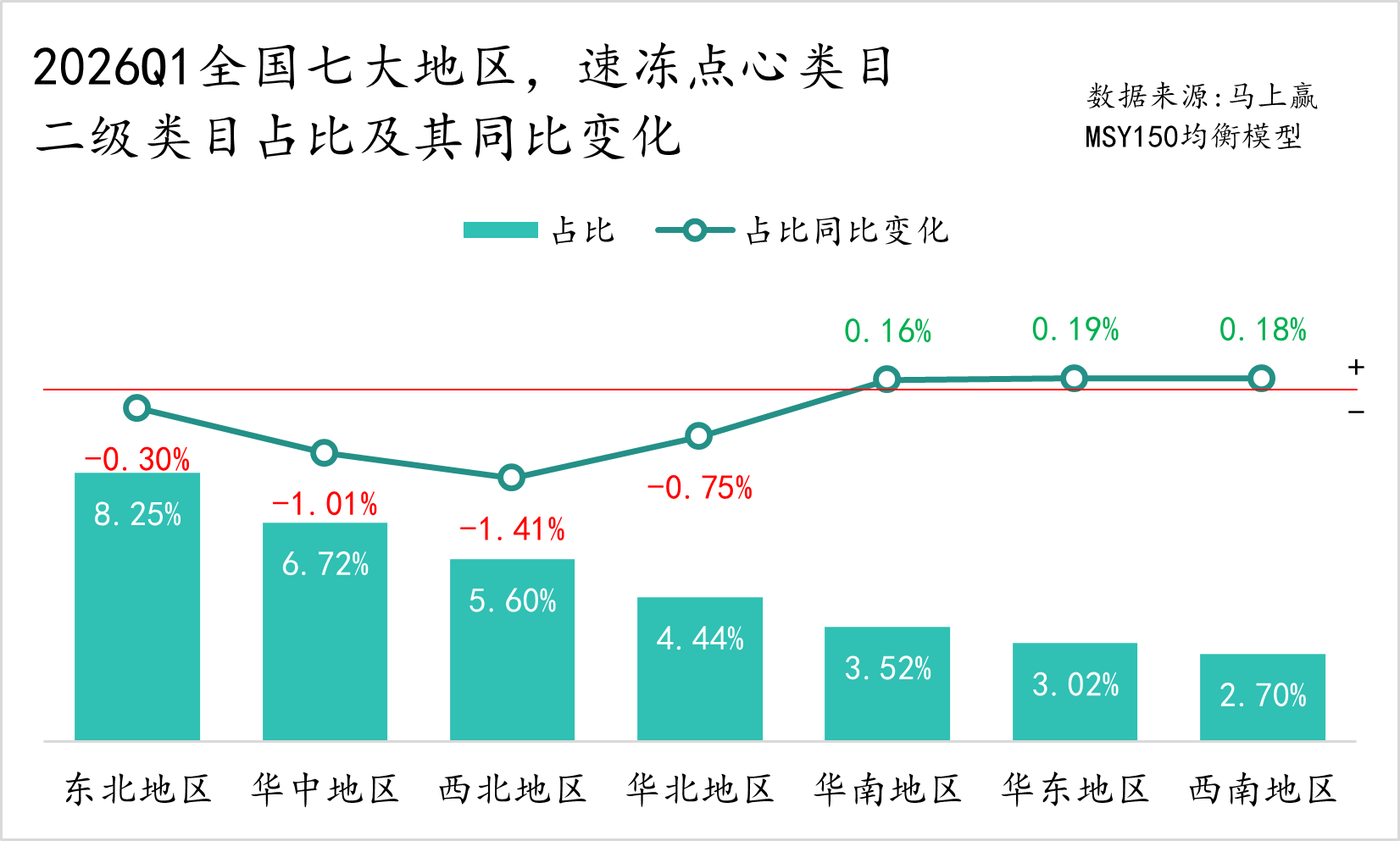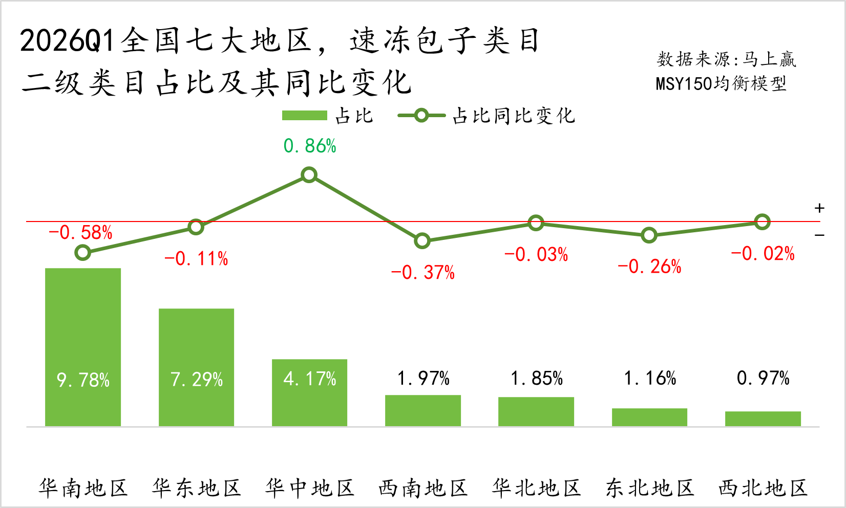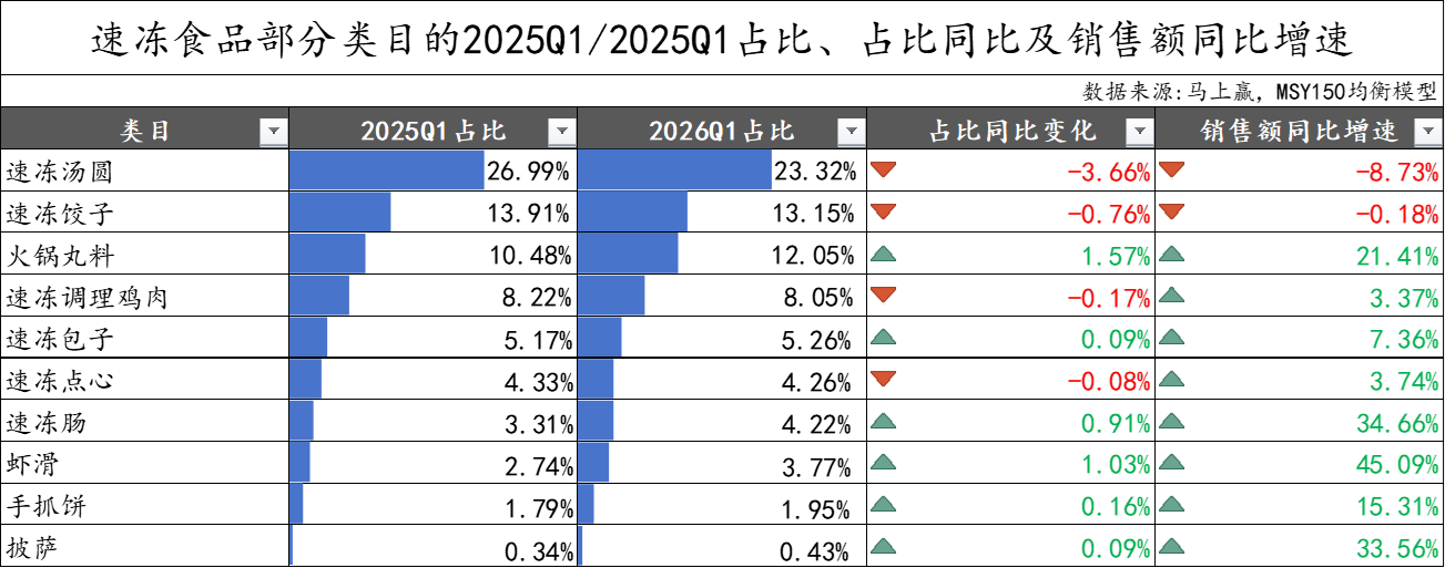 数据来源:马上赢品类洞察看板(四级类目)-2026Q1-MSY150均衡模型-速冻食品类目占比&销售额同比变动